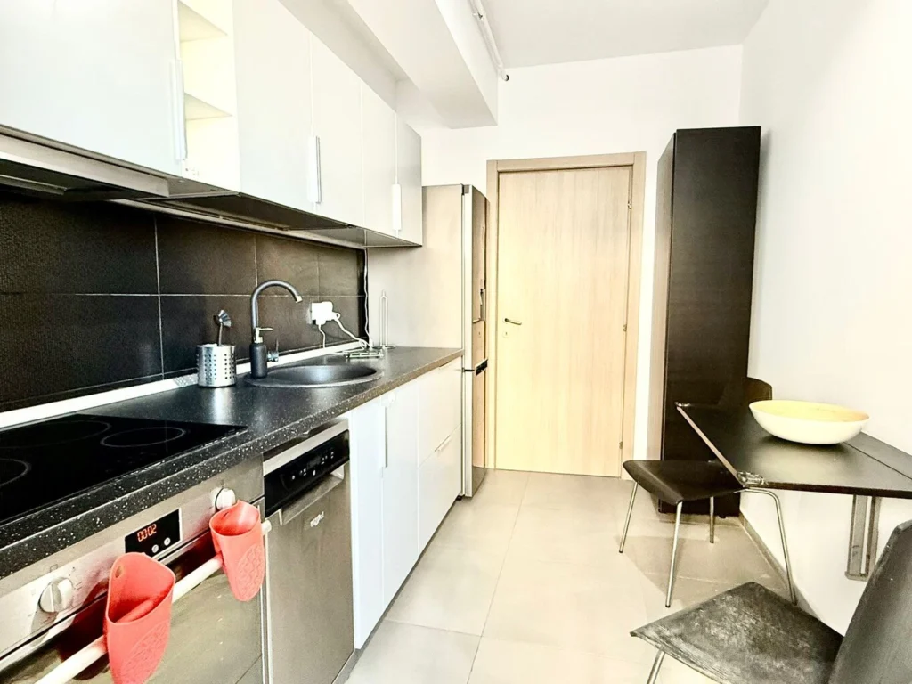 Un avantaj important al acestei proprietăți este faptul că bucătăria este separată (închisă), complet mobilată și utilată. Această compartimentare oferă un plus de confort, menținând zona de gătit distinctă de spațiul de zi și contribuind la o organizare eficientă a locuinței. Bucătăria închisă este apreciată atât de familii, cât și de cei care își doresc o locuință practică, ușor de utilizat în viața de zi cu zi.